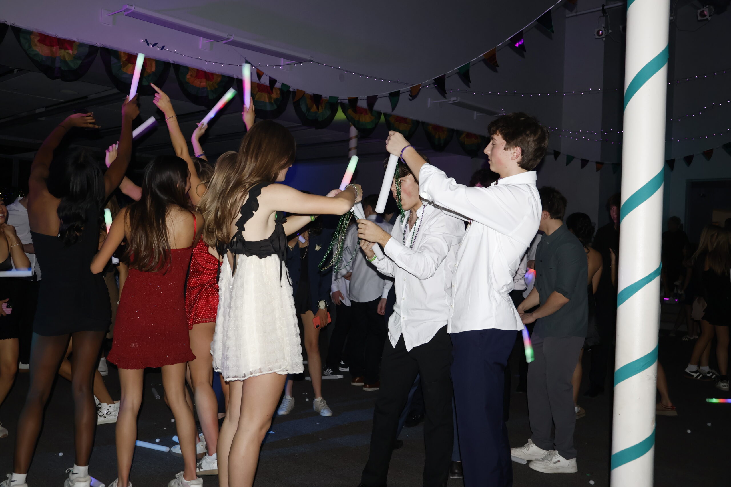 Laughter and music filled the brightly colored Dining Hall on Saturday, February 8, for WINFO, our annual Winter Formal. Decorated with a Mardi Gras theme, the space was covered in beads and bold-colored masks, creating an energetic setting for students from all grade levels to come together for the night.